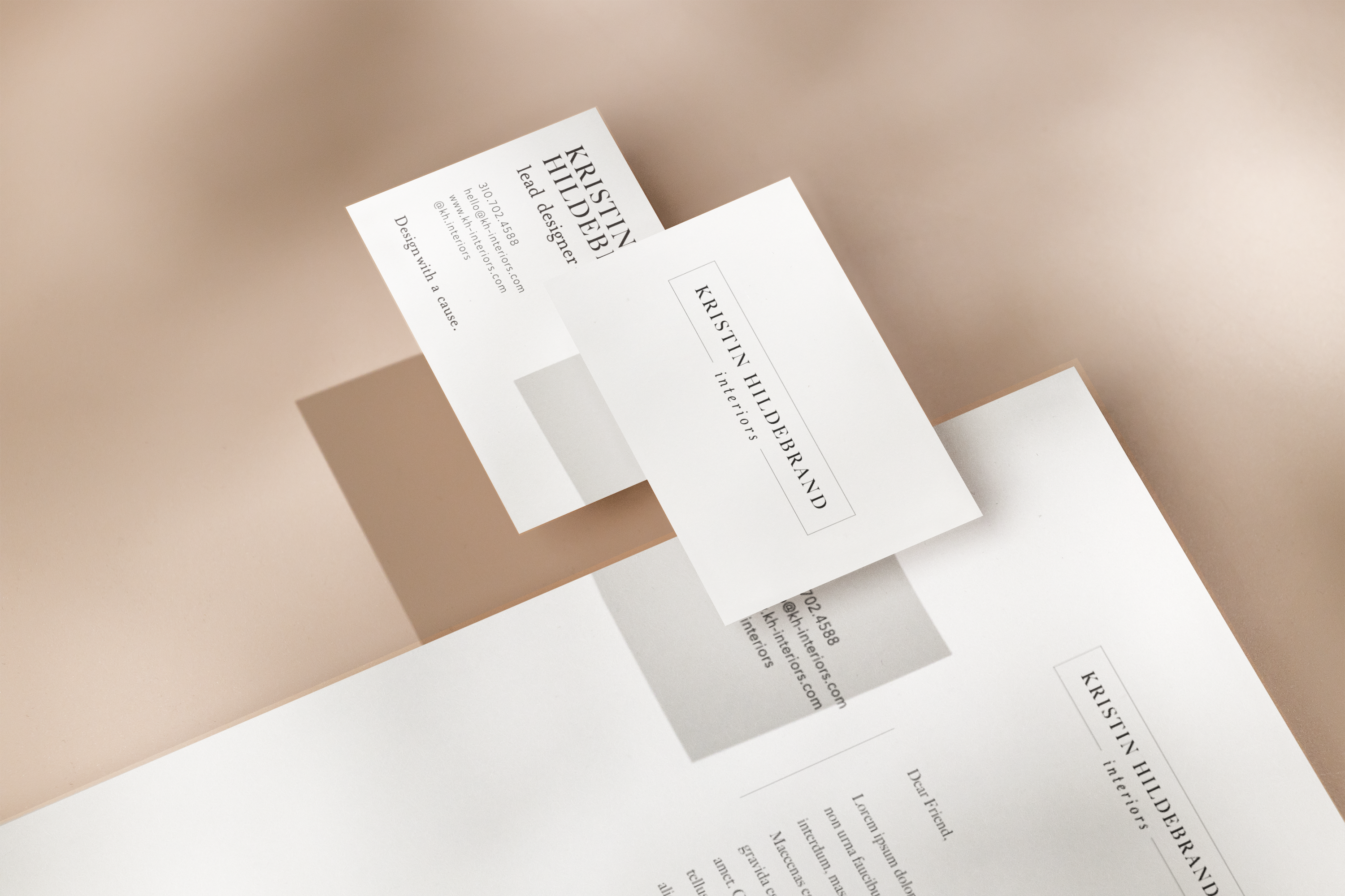 I helped Kristin create a comprehensive brand system for her new interior design company, complete with logo, color palette, letterhead, business card, website, thank you card, and invoice.