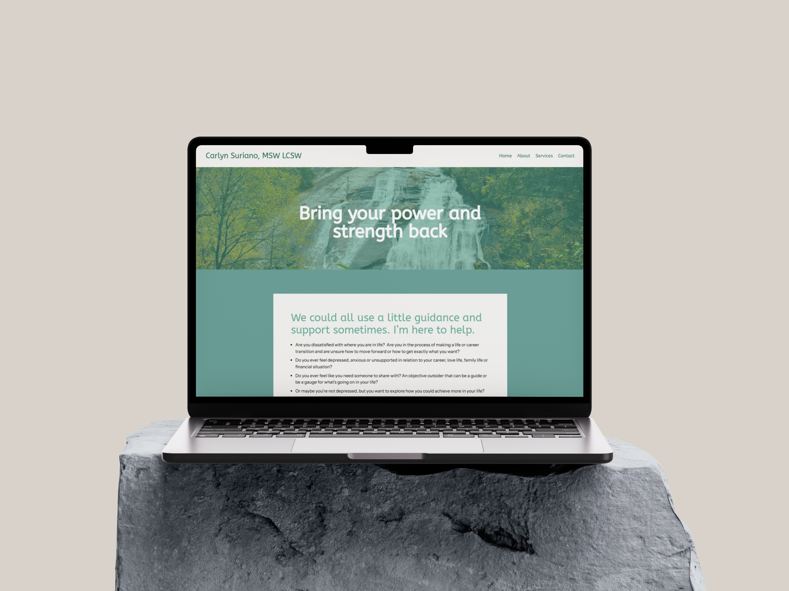 Carlyn reached out to me needing a new website for her psychotherapy services. I put together a site using an earthy, comforting color palette and nature imagery to complement her vision.