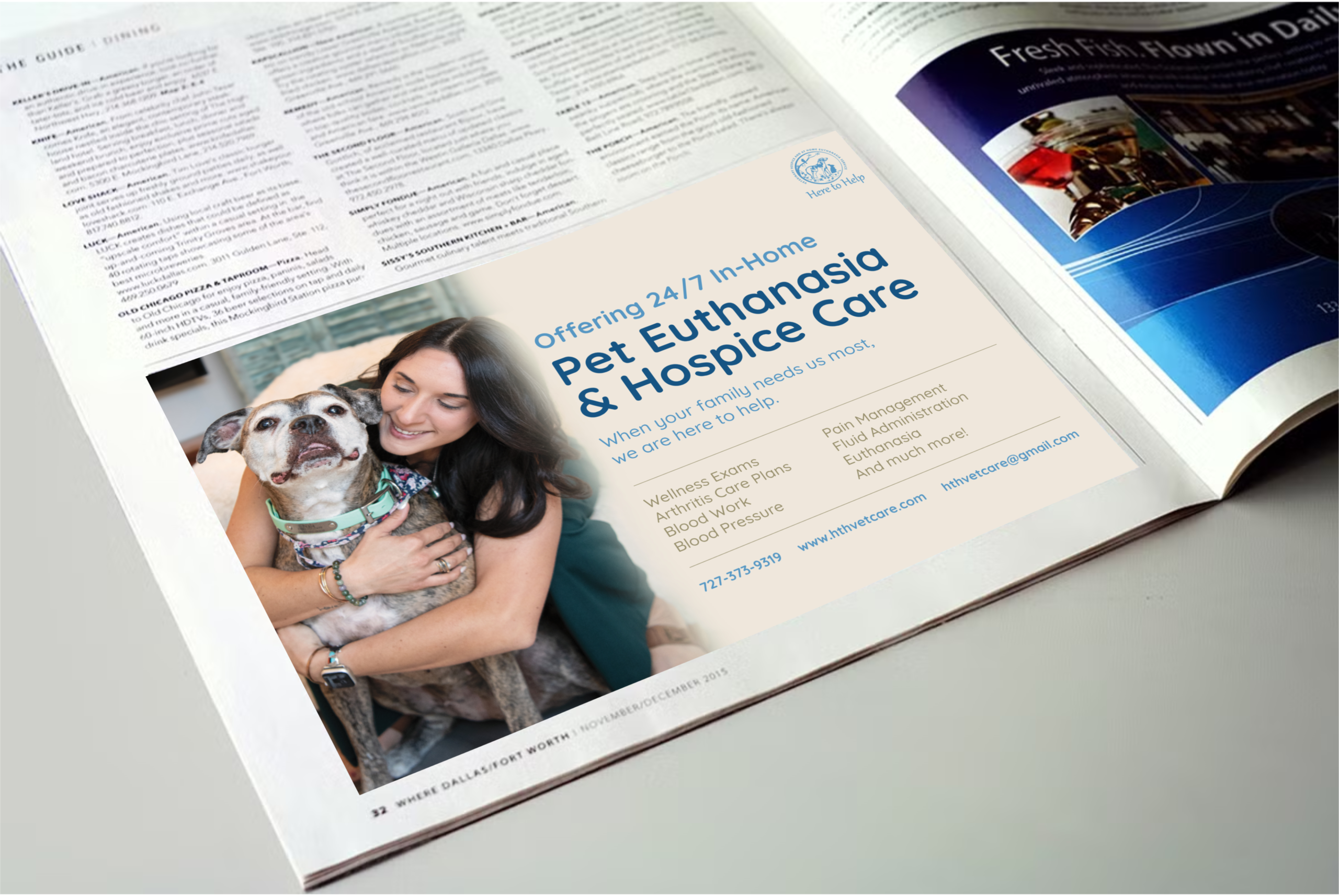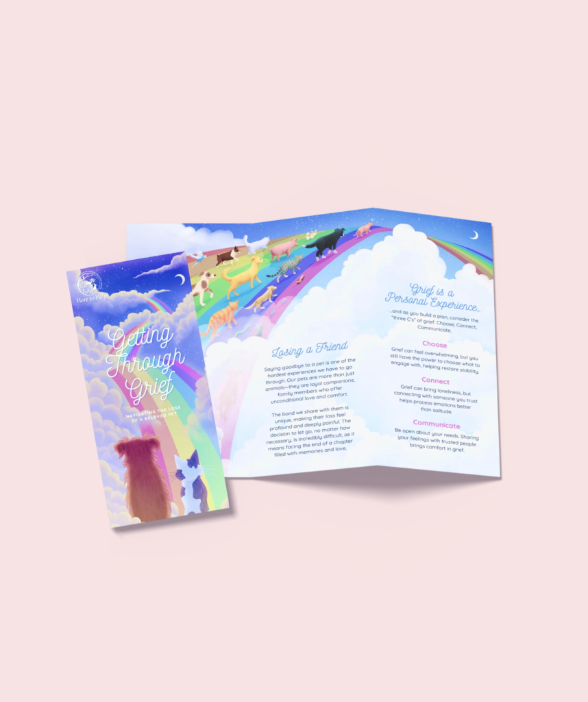 Here to Help is an at-home hospice and euthanasia service for pets based in Florida. I have assisted them with several print graphics, from magazine ads to brochures and informational sheets presented to clients. I enjoyed developing an illustration style for them to use across their digital and print media.
