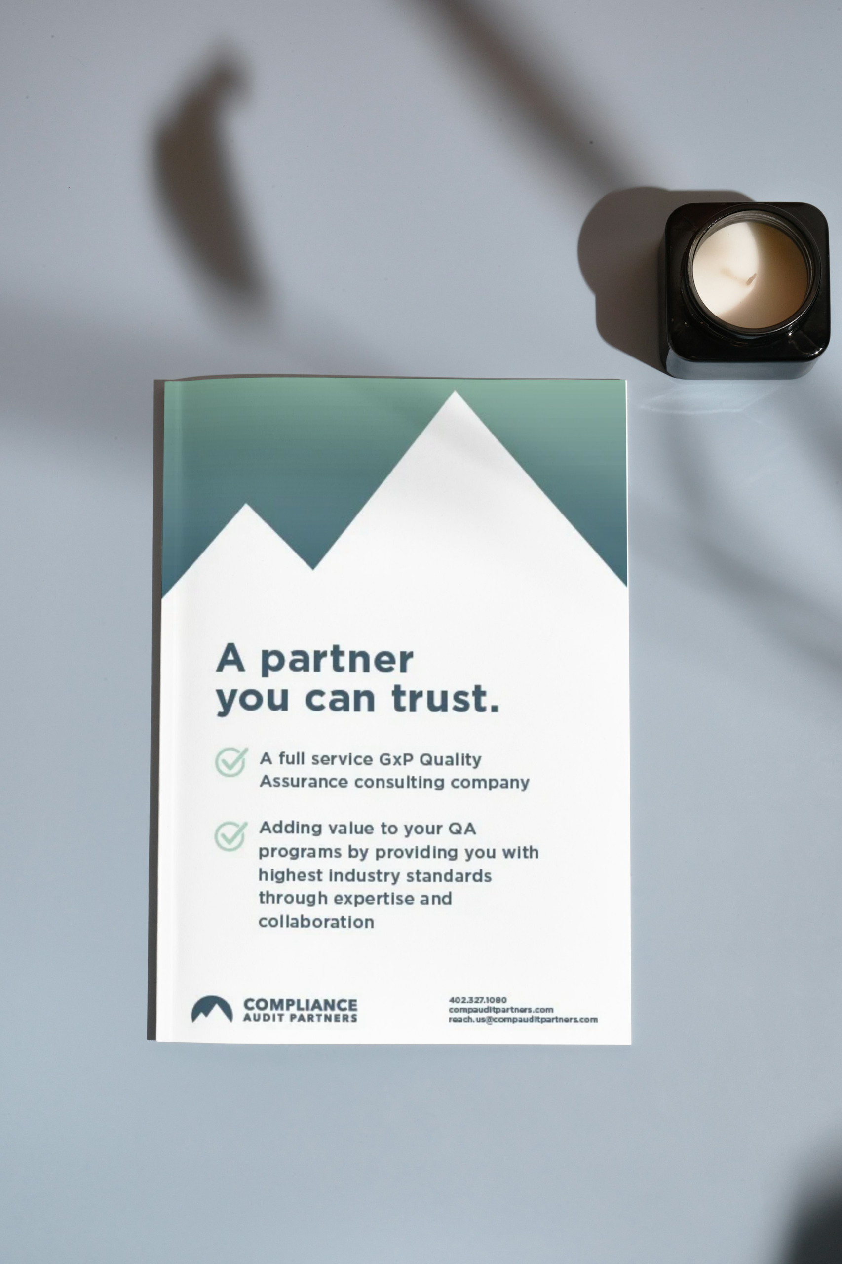 One of my longtime clients, Compliance Audit Partners is a quality assurance consulting company doing work both nationally and globally. Initially I created a logo and brand identity for the company, and every year I do a refresh of their conference booth graphics, signage and print ads.